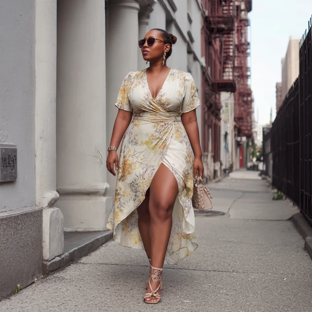 • Statement Dresses: Wrap, bodycon with ruching, or empire cuts—they create shape and movement.