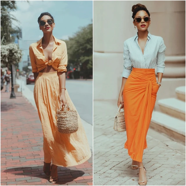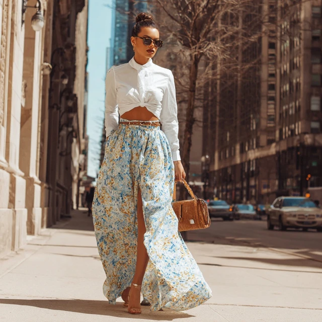 Why It Works: Flow plus structure equals perfect balance. The maxi skirt adds elegance while a cropped blouse keeps it playful.