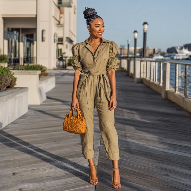 Why It Works: Jumpsuits are one-and-done magic—comfortable, flattering, and stylish without overthinking.