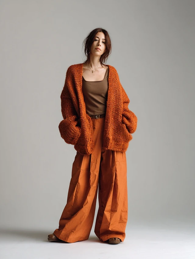 - Oversized Cardigan + Slim Base for cozy, balanced silhouettes