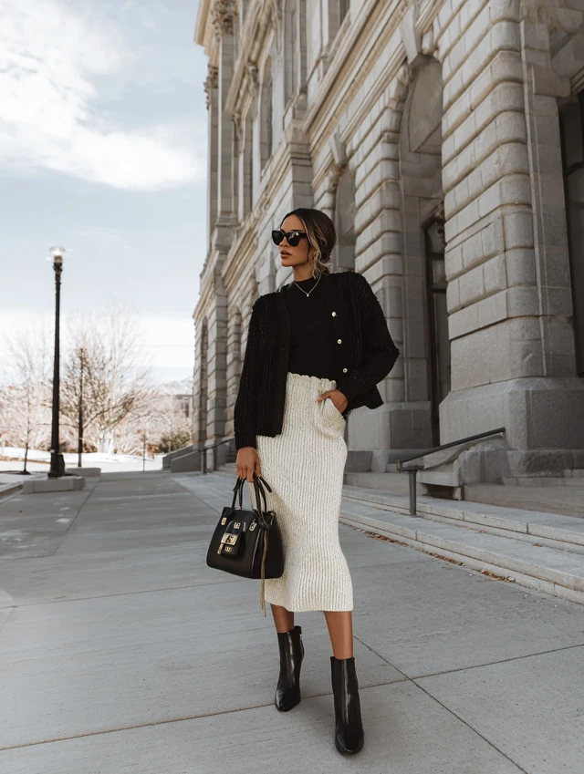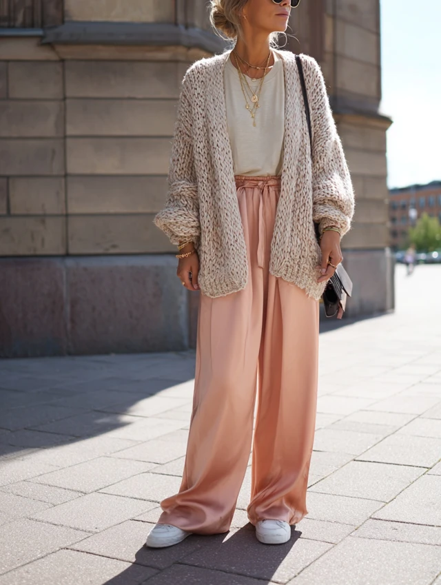 - Texture play: Combine chunky knits with smooth fabrics (silk, denim, wool).