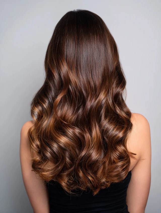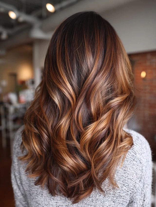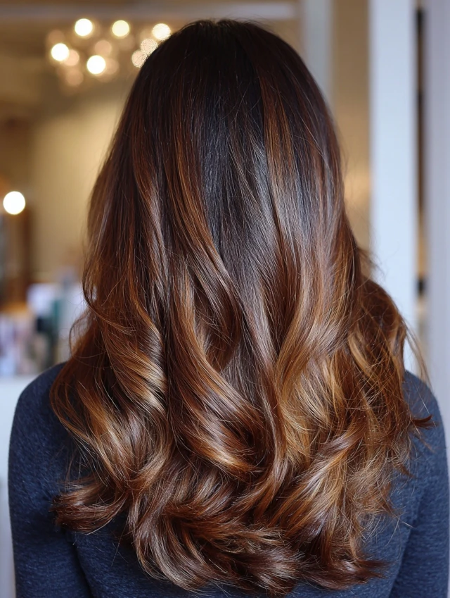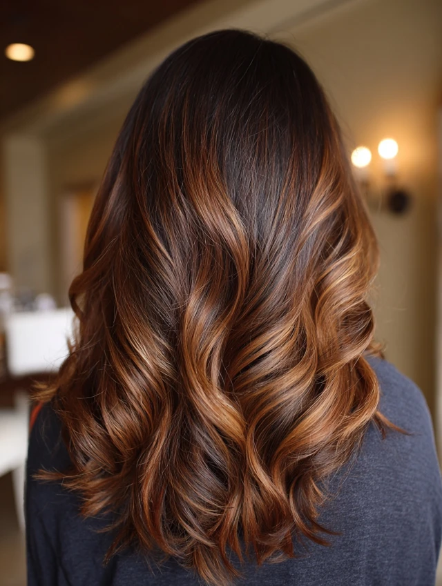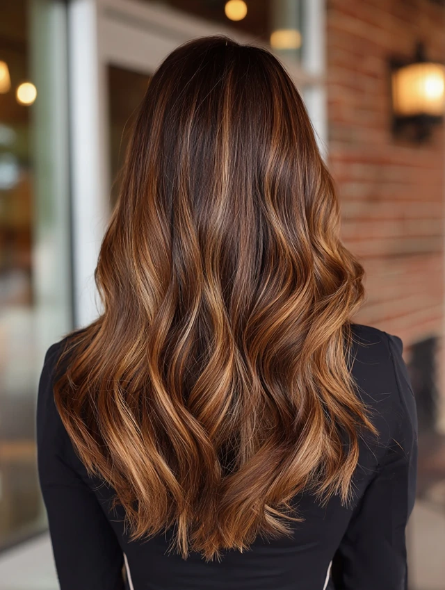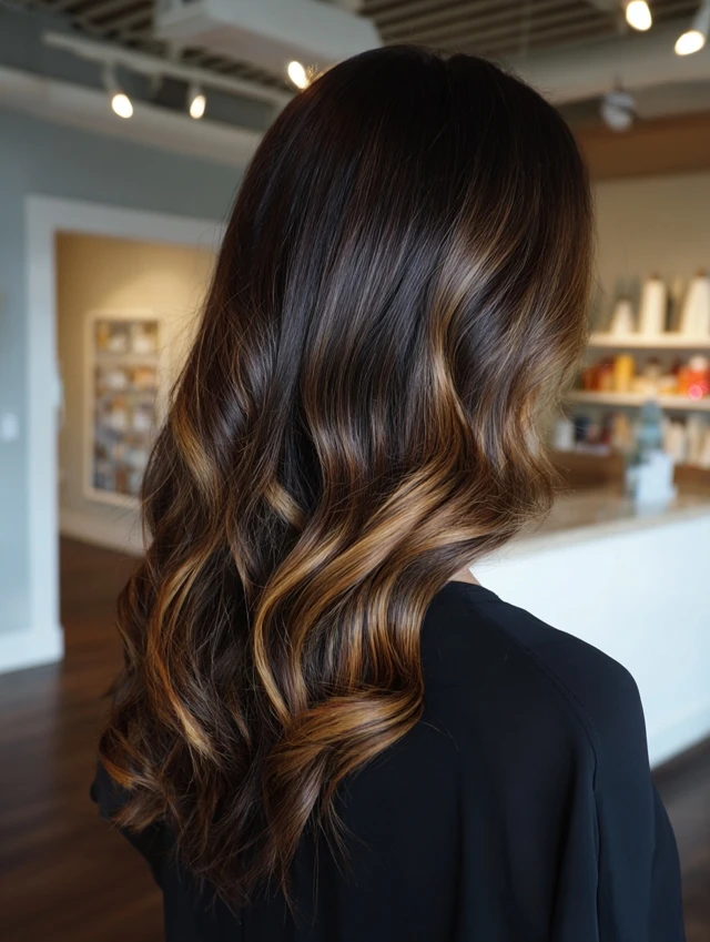 With proper care, dark caramel balayage stays rich and radiant for weeks.