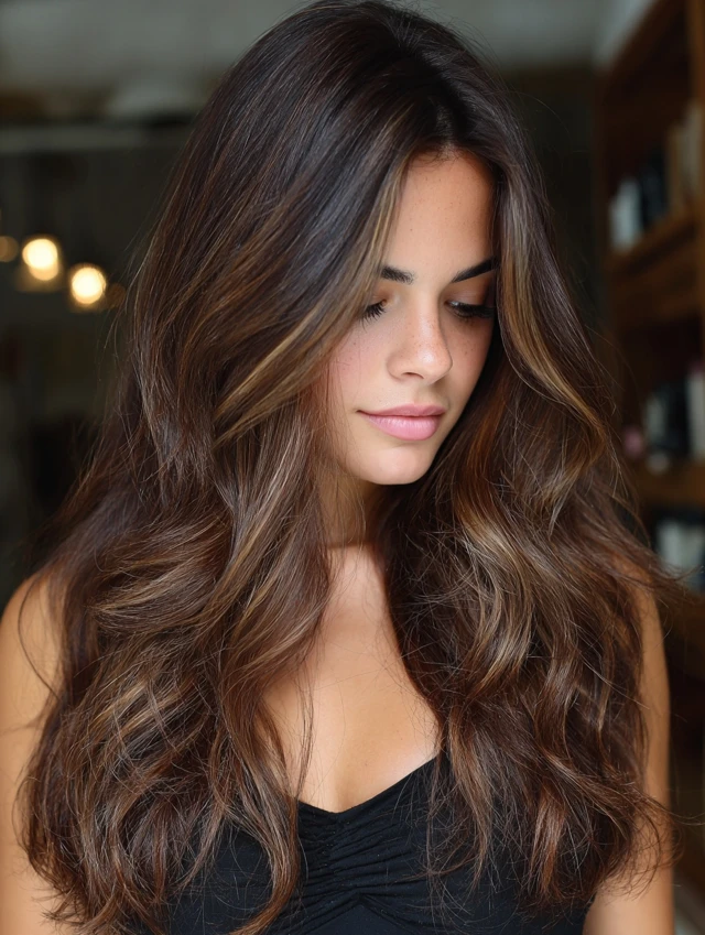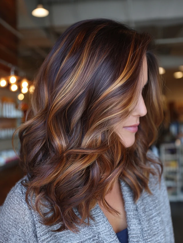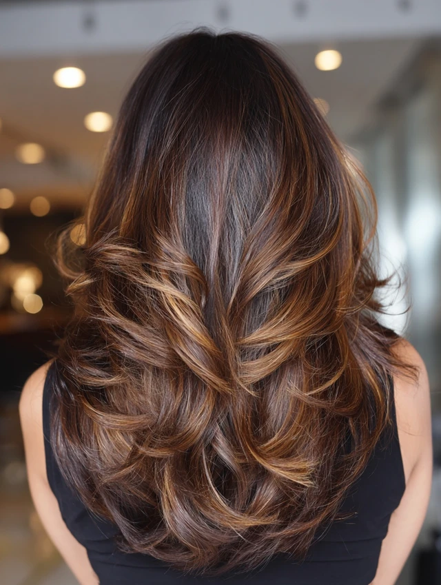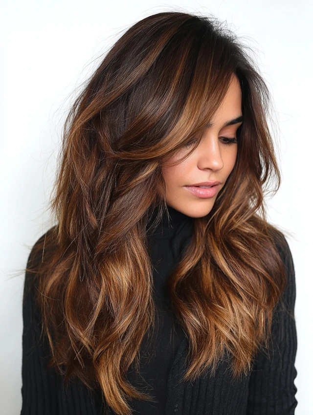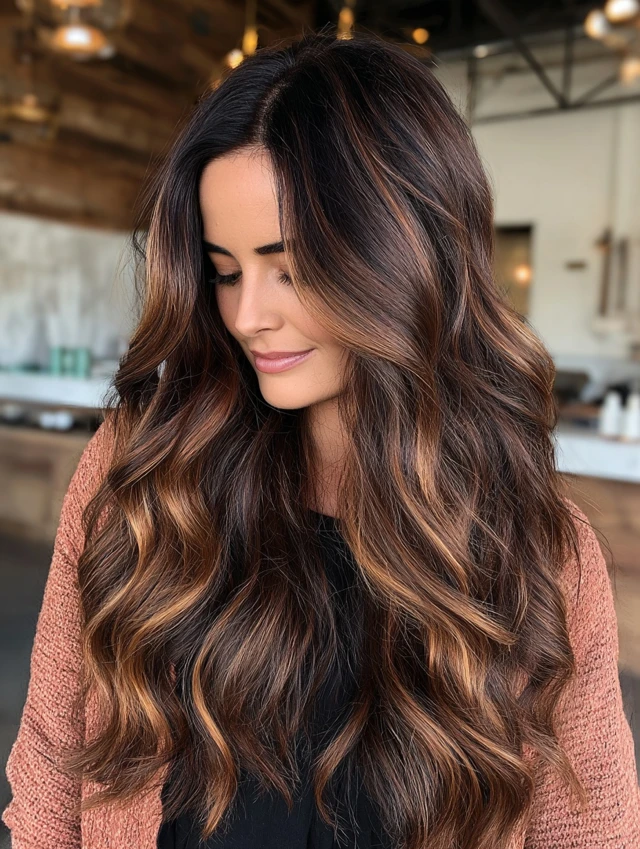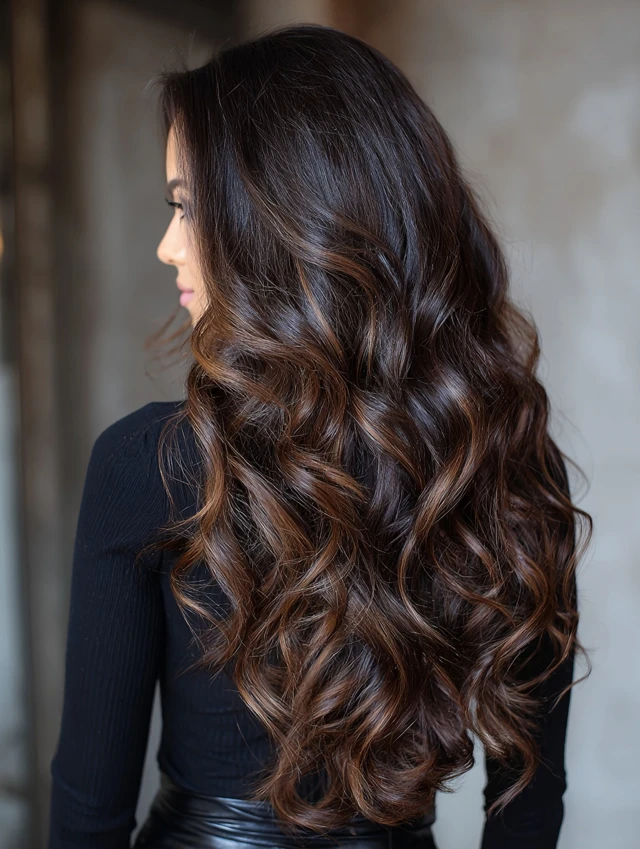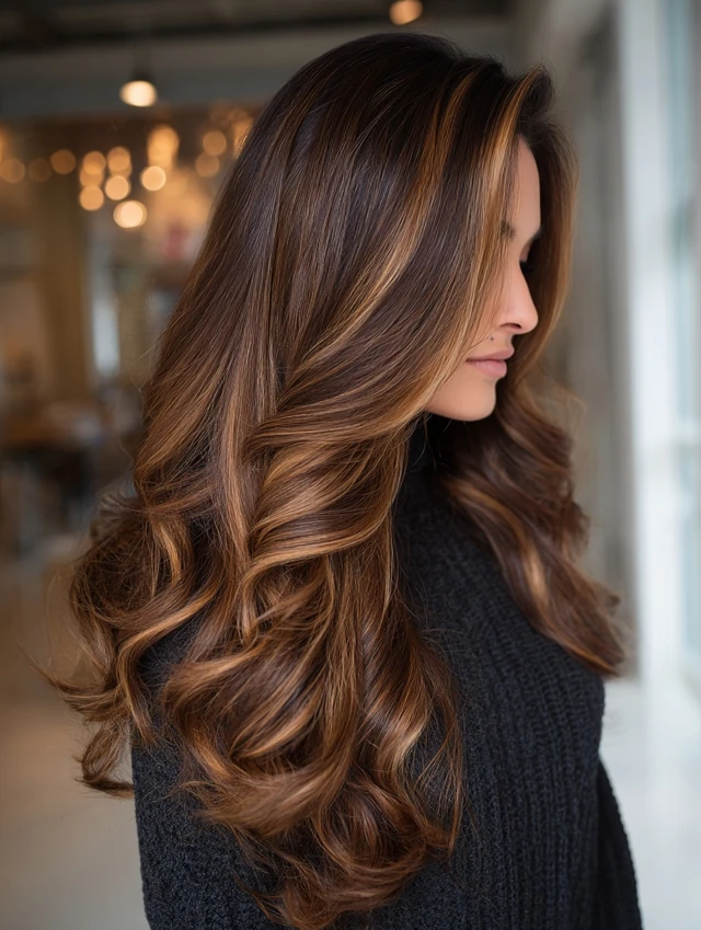 With proper care, dark caramel balayage stays rich and radiant for weeks.