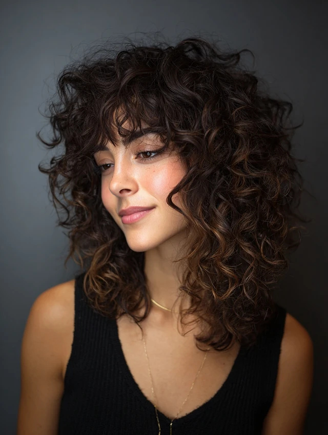 Layers prevent curls from looking heavy or triangular, shaping them around the face.