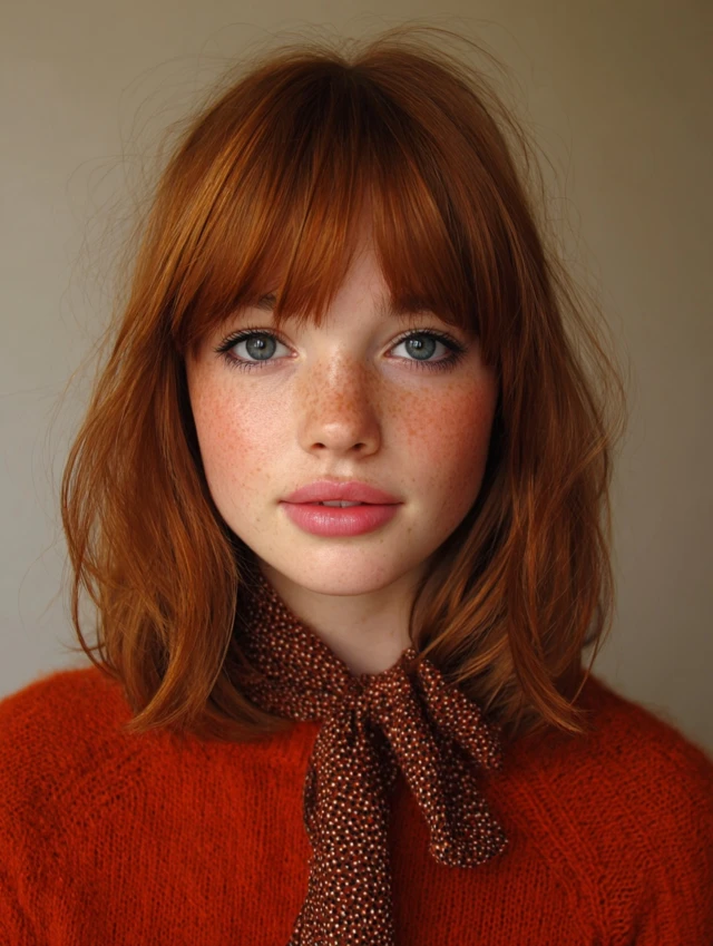 Bangs frame the face and add personality.