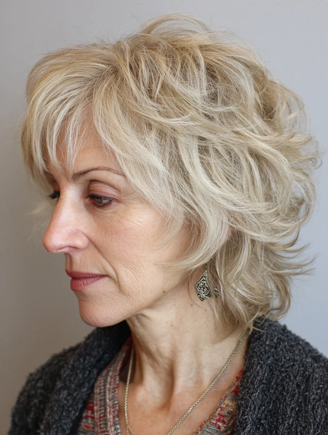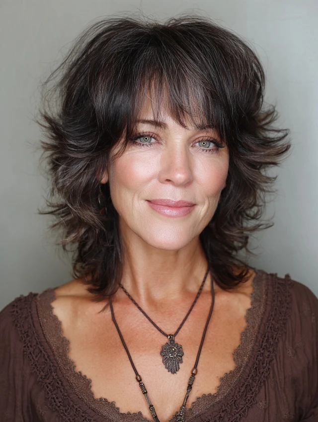 The shag adds volume, texture, and movement—perfect for salt and pepper hair.