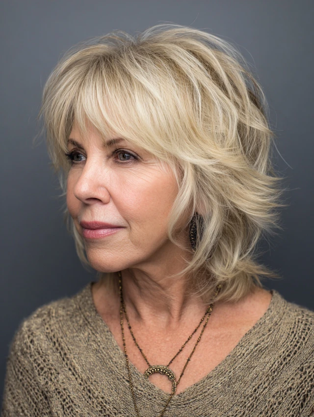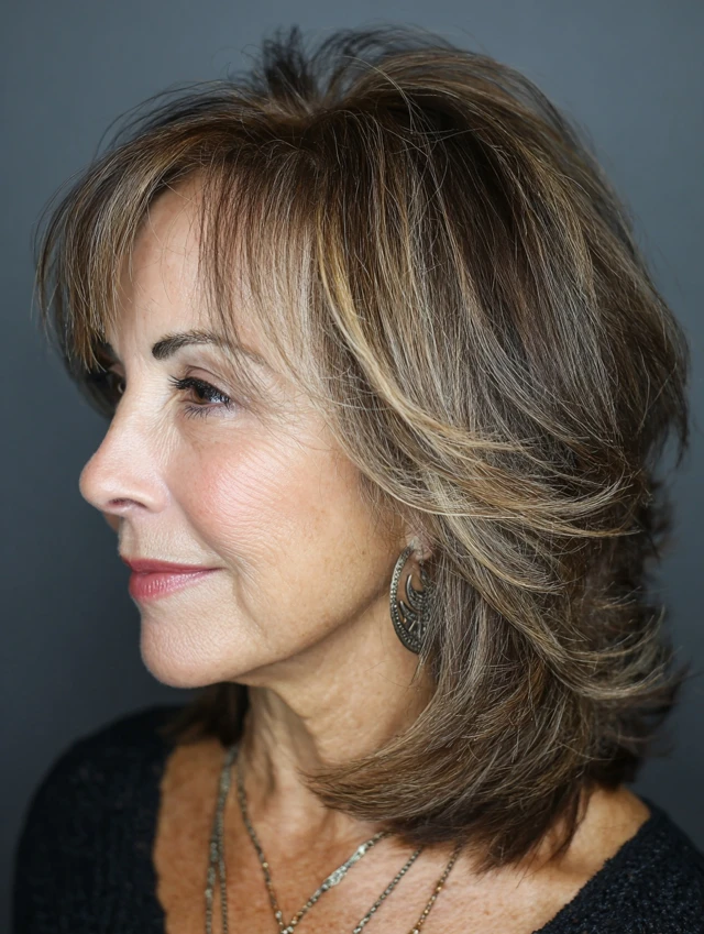 As hair texture changes with age, choosing styles that add lift and movement is essential. Flat, one-length cuts can feel heavy, while layered styles bring lightness and sophistication.