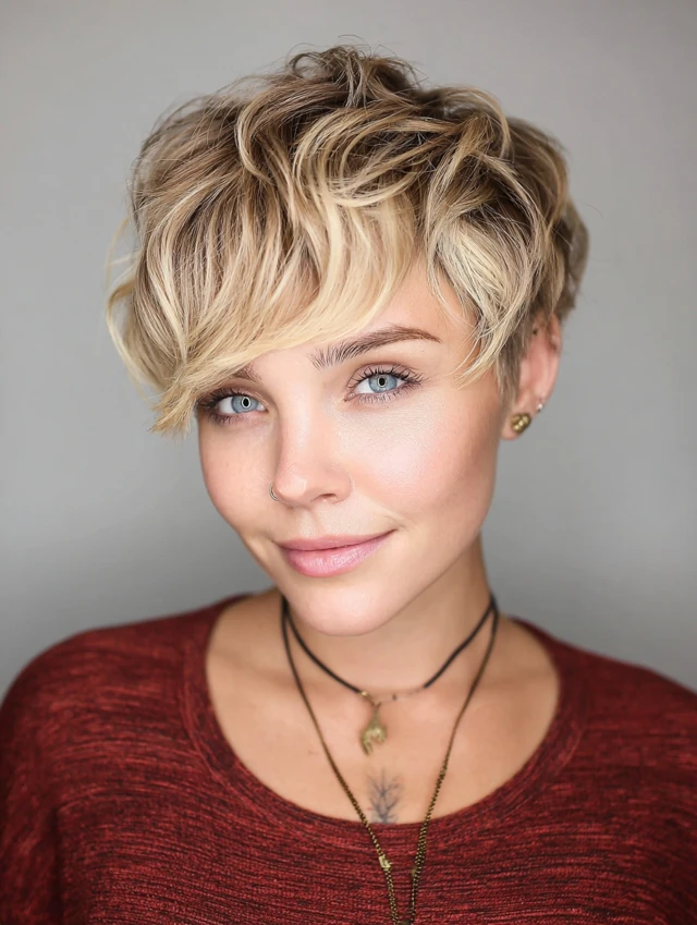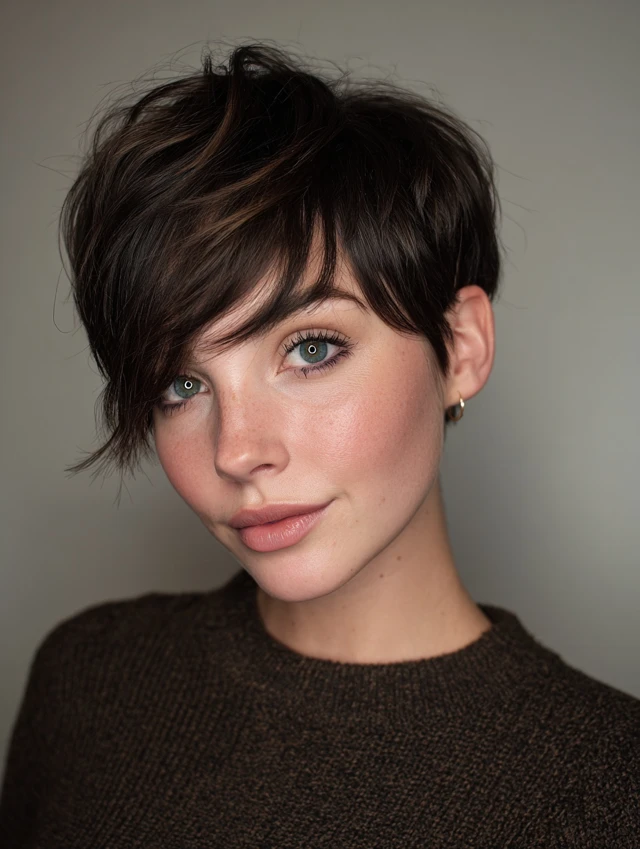 Side-swept layers and textured pixies soften strong jawlines while adding height and dimension.