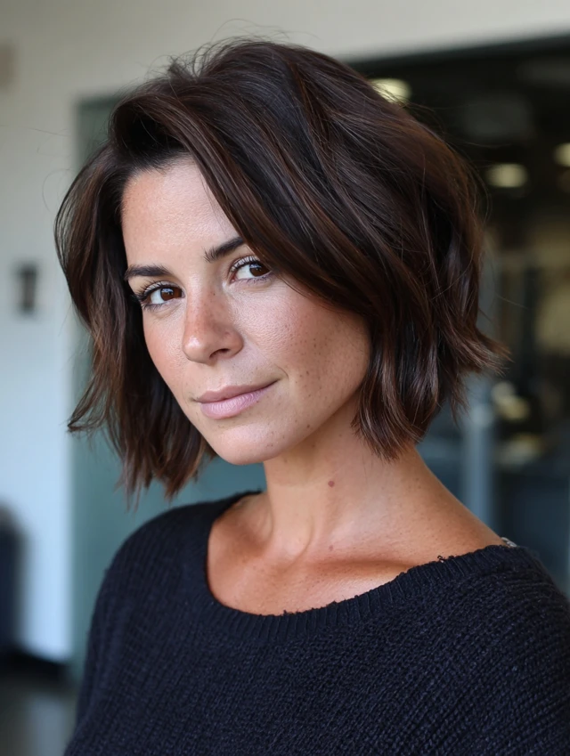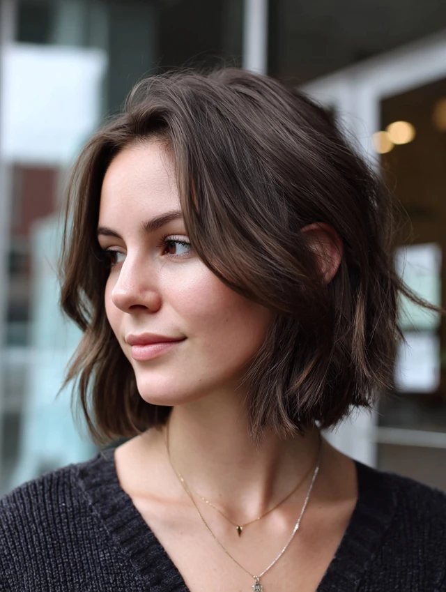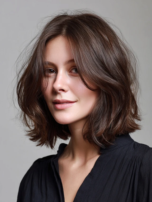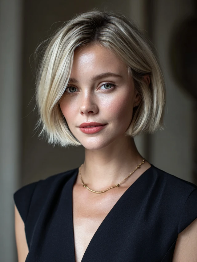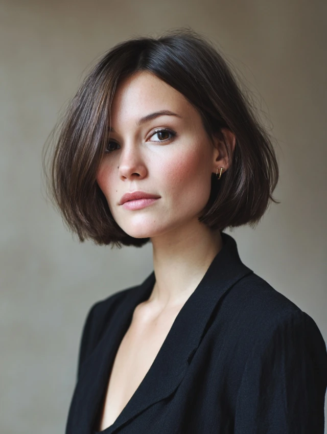 Why It Works: Subtle layering around the face adds softness while blunt ends give weight.