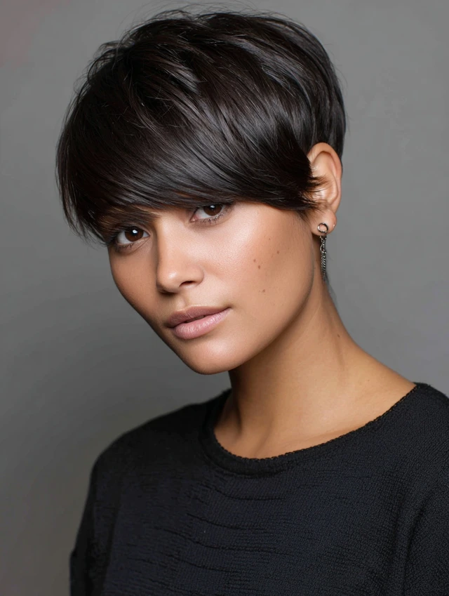Why It Works: This edgy-meets-elegant cut plays with contrast—short in the back, soft across the face.