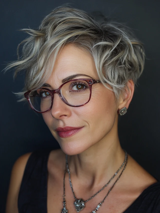 Short pixie haircuts with glasses are stylish, practical, and incredibly flattering. With soft texture, clean lines, or subtle edge, pixie cuts highlight your features while allowing your glasses to become part of your signature look.