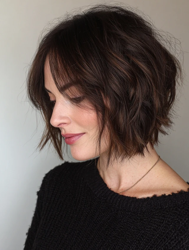 A bob with shaggy layers looks trendy and effortless.