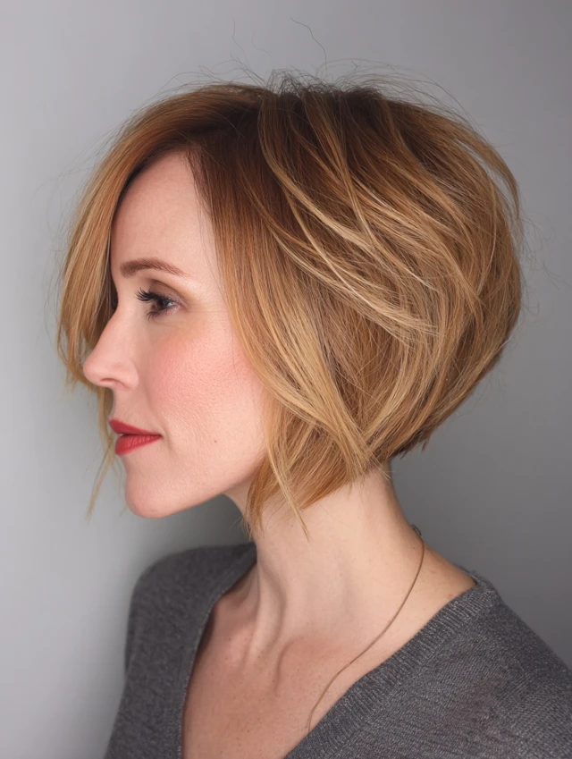 Layers and stacked cuts create volume and lift, framing the face beautifully.