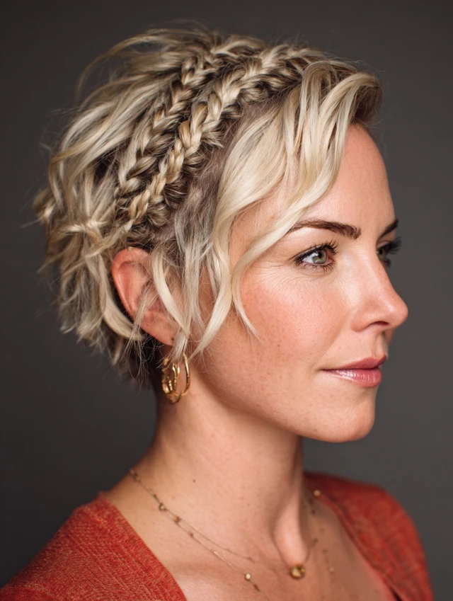 2. Short Pixie With Side Braids