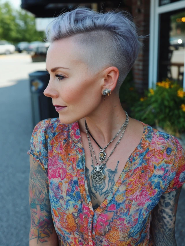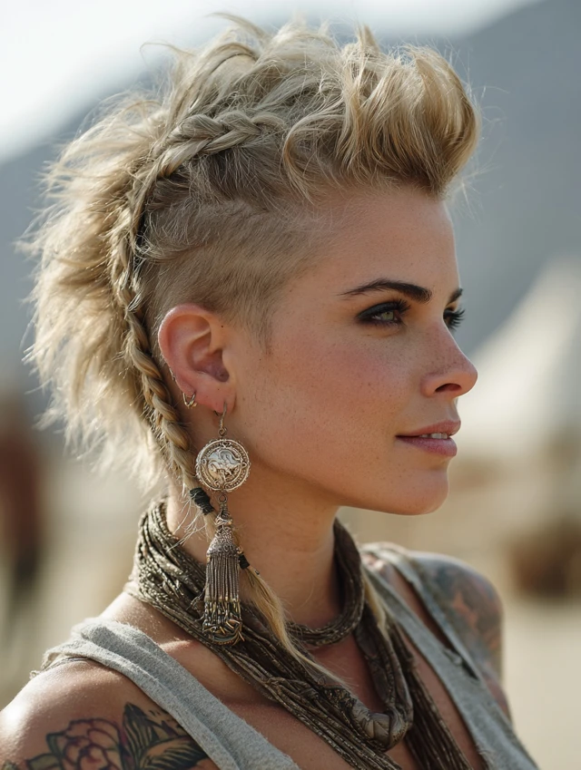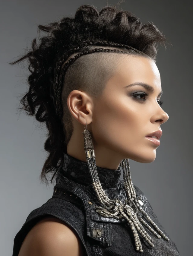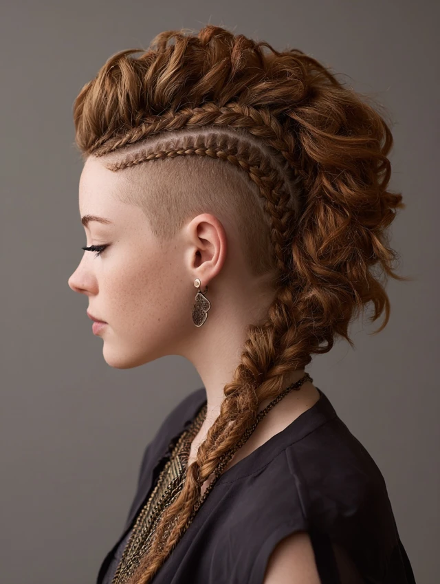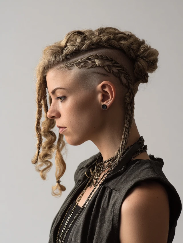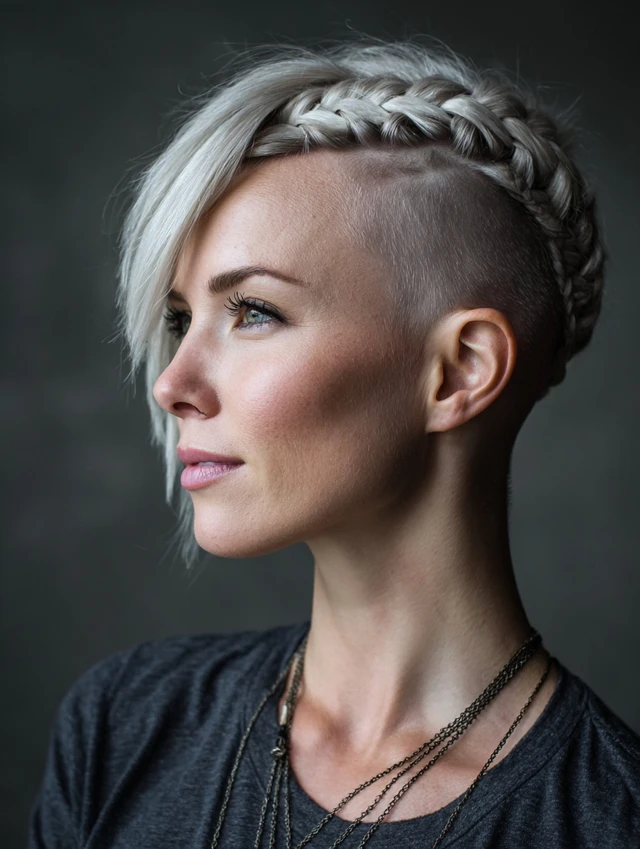 This style blends femininity and power. The braided top adds detail, while the shaved sides create a fierce edge.