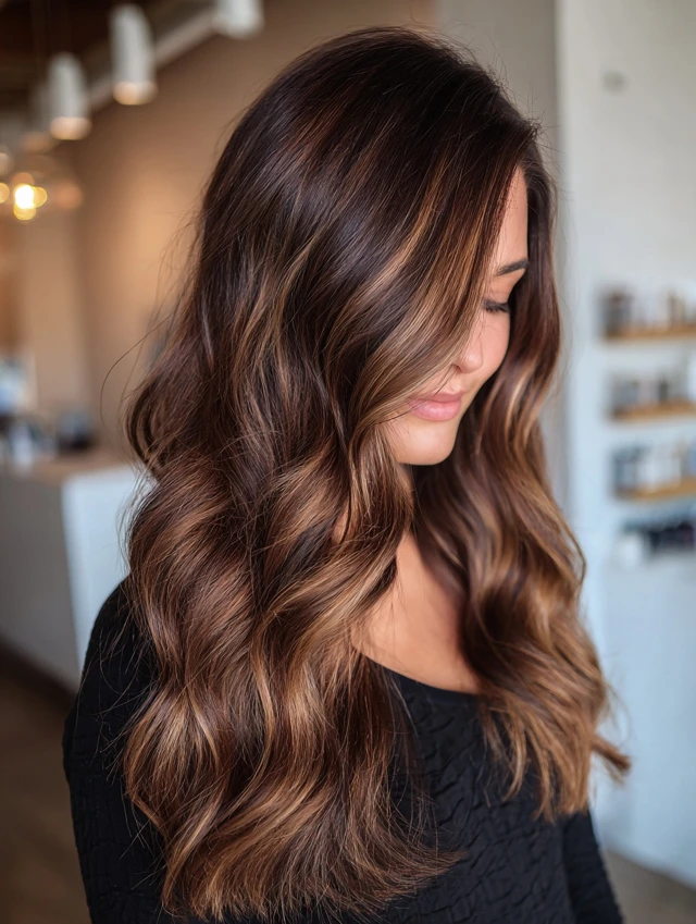 Balayage is especially flattering on darker hair in winter because it builds dimension without harsh contrast.